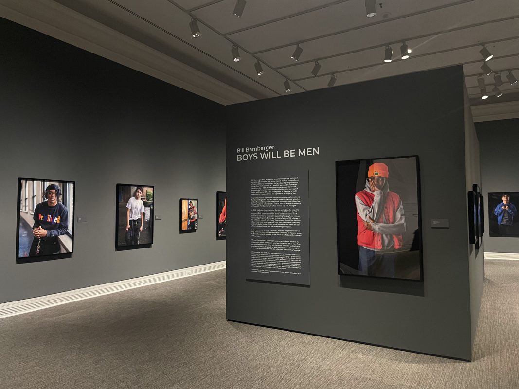 The exhibit explores masculinity and the transition from boyhood to manhood from the perspective of Durham School of the Arts High School students. The exhibit encourages viewers to consider changing ideas around gender through its 42 color portraits on display.